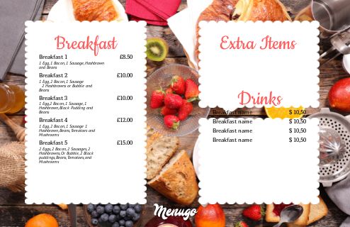 Breakfast menu